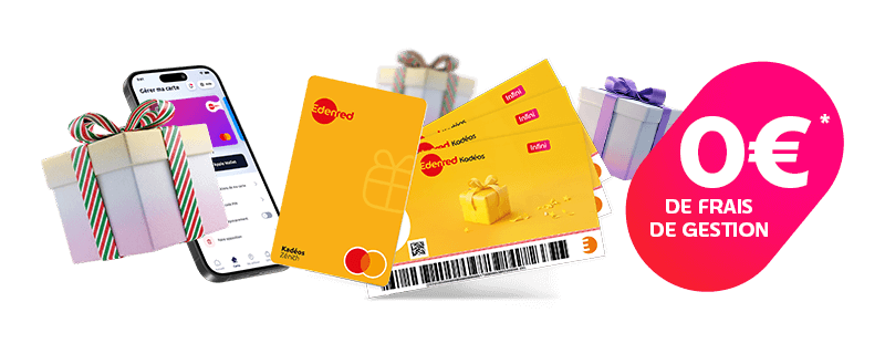 * Frais de gestions offerts pour toute 1ere commande de chèques Kadéos, cartes Kadéos ou Kadéos Connect validée avant le 31/12/2025 en France métropolitaine, d’un montant minimum de 450€ et maximum de 150 000€.